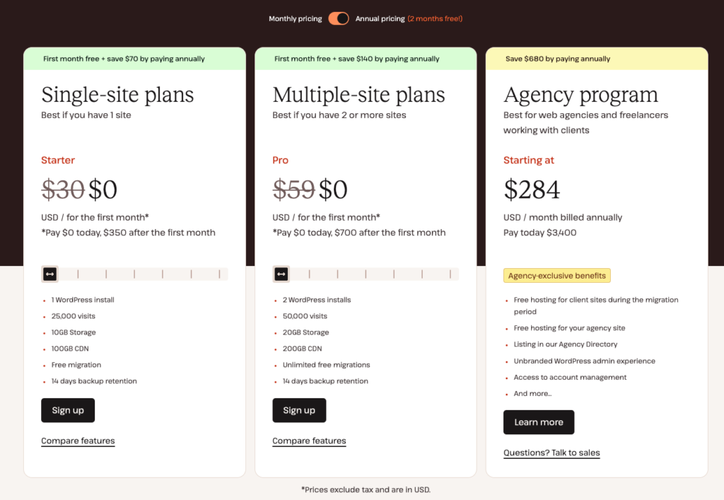 - Gói WordPress bắt đầu từ 30 USD mỗi tháng (khi thanh toán hàng năm).